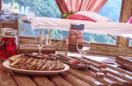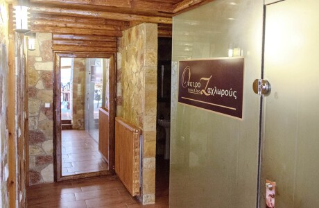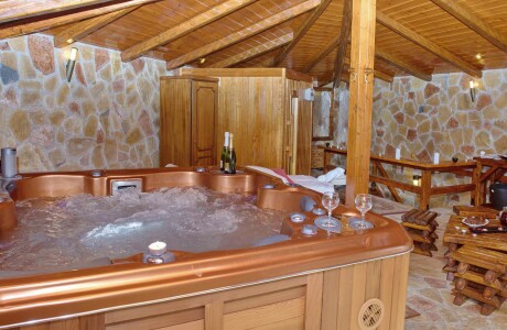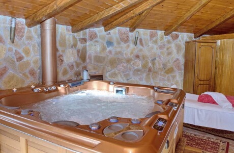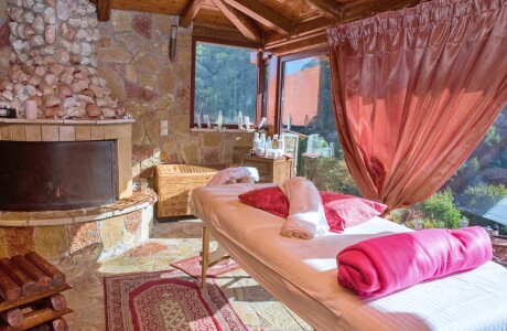Το spa βρίσκεται στο πιο υψηλό σημείο του συγκροτήματος, προσφέροντας μαγευτική θέα προς το καταπράσινο φαράγγι του Βουραικού και το γραφικό χωριουδάκι της Ζαχλωρούς. Κάτω από το απαλό φως των κεριών και τη ζεστασιά του τζακιού, μπορείτε να απολαύσετε τη θεραπεία σας ή να χαλαρώσετε στο jacuzzi με ένα ποτήρι σαμπάνια.