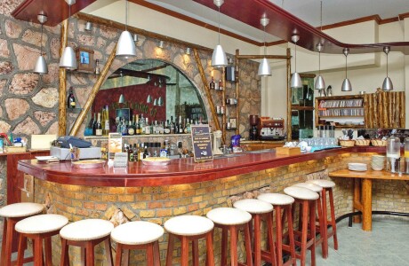Μέσα από τη μεγάλη τζαμαρία, η μαγευτική θέα στο καταπράσινο τοπίο κόβει την ανάσα, ενώ μπορείτε να απολαύσετε έναν εκλεκτό καφέ ή κάποιο από τα signature ροφήματά μας σε ένα περιβάλλον από πέτρα, ξύλο και αυθεντική φιλοξενία.